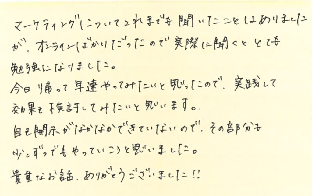 このセミナーに参加した方が、どんなことを感じたのか、読んでみてください!!