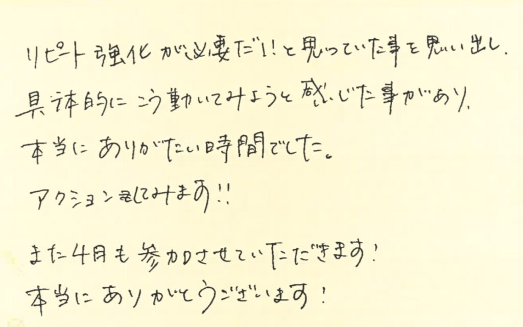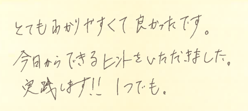 色々と気づいてくださったようで、本当に講師冥利に尽きます!